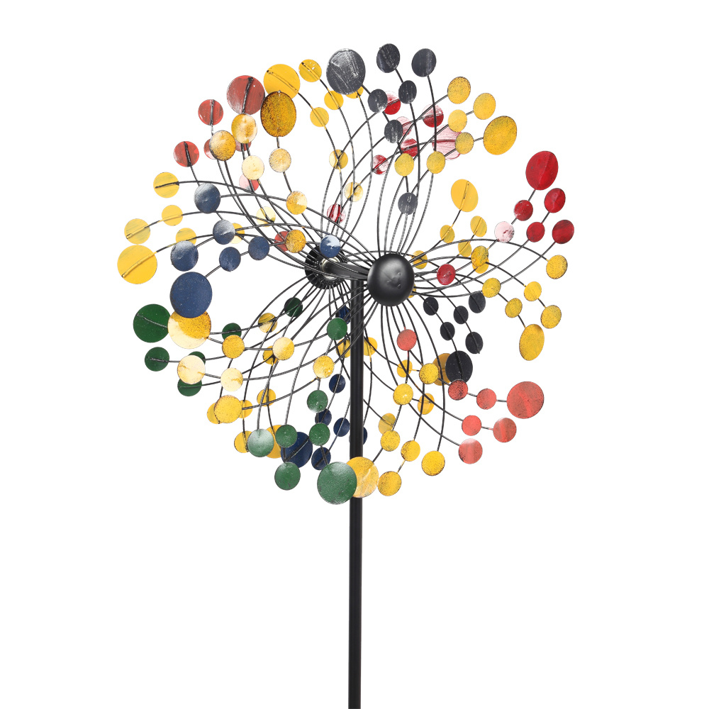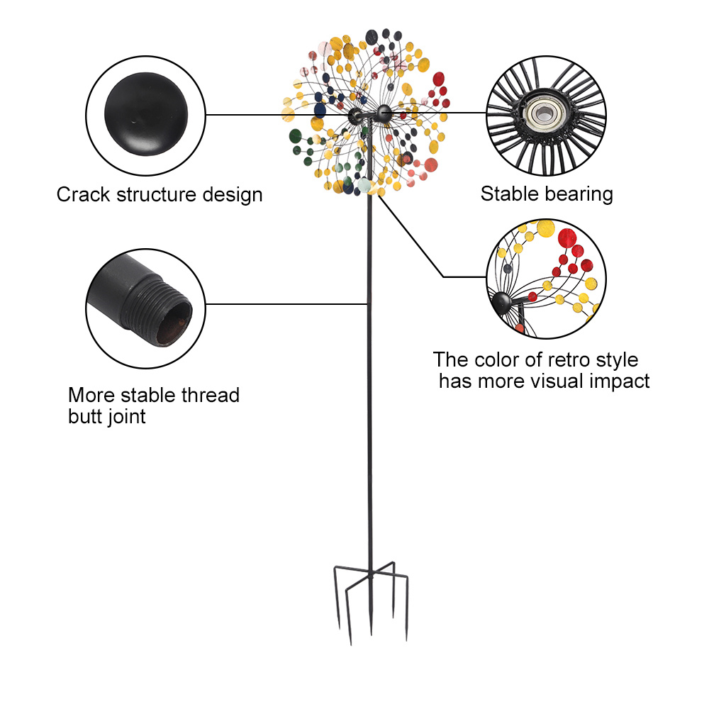 3.Our kinetic metal wind spinners come with a multi-color brushed coat finish and a stable stake at the base, which is built to withstand all weather, sturdy and durable for windy days.