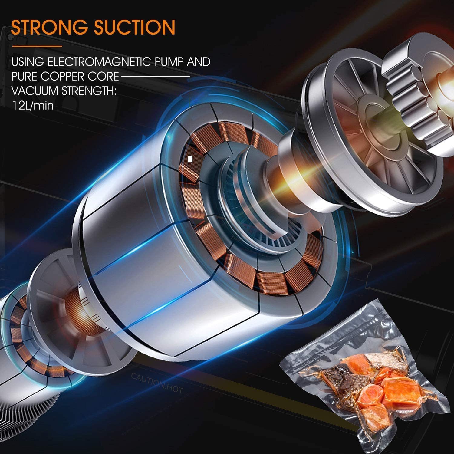 Customize Your Bag with the Delicate Cutter Unlike the integrated cutter, the delicate cutter is more portable. The portable cutter easily creates custom-sized bags anytime and anywhere you want. Whether the subject is large or tiny. Reduce the bag waste, cut it as how you feel it, and let the cutter get the most out of your vacuum-seal roll. | High Suction Power The electromagnetic pump and pure copper core bring massive suction power. KOIOS vacuum sealer is 50% more capable than ordinary appliances on the market and able to perform up to 40 consecutive seals. You can vacuum different types of food manually. | Automatic vacuum sealing The physical buttons bring a sense of security and do not cause the insensitive touch issues, unlike digital touch buttons. One-touch automatic vacuum sealing makes it easy to use, even for elderly people. The efficient and quick vacuum sealing keeps the food fresh, just as though time itself has frozen. | Compact and Lightweight The compact and lightweight form factor makes it easy to put in a drawer when not in use, without taking up extra space. |