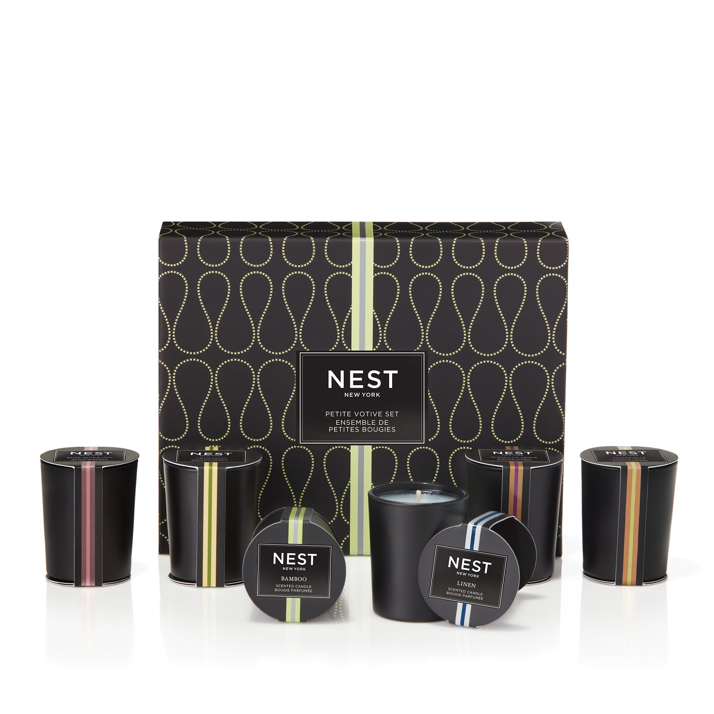 A mix of classic and fresh for spring fragrances, this petite 0.95 oz votive set offers a gorgeous spectrum of scents: Bamboo, Grapefruit, Moroccan Amber, Linen, Rose Noir & Oud, and Velvet Pear. Limited Edition