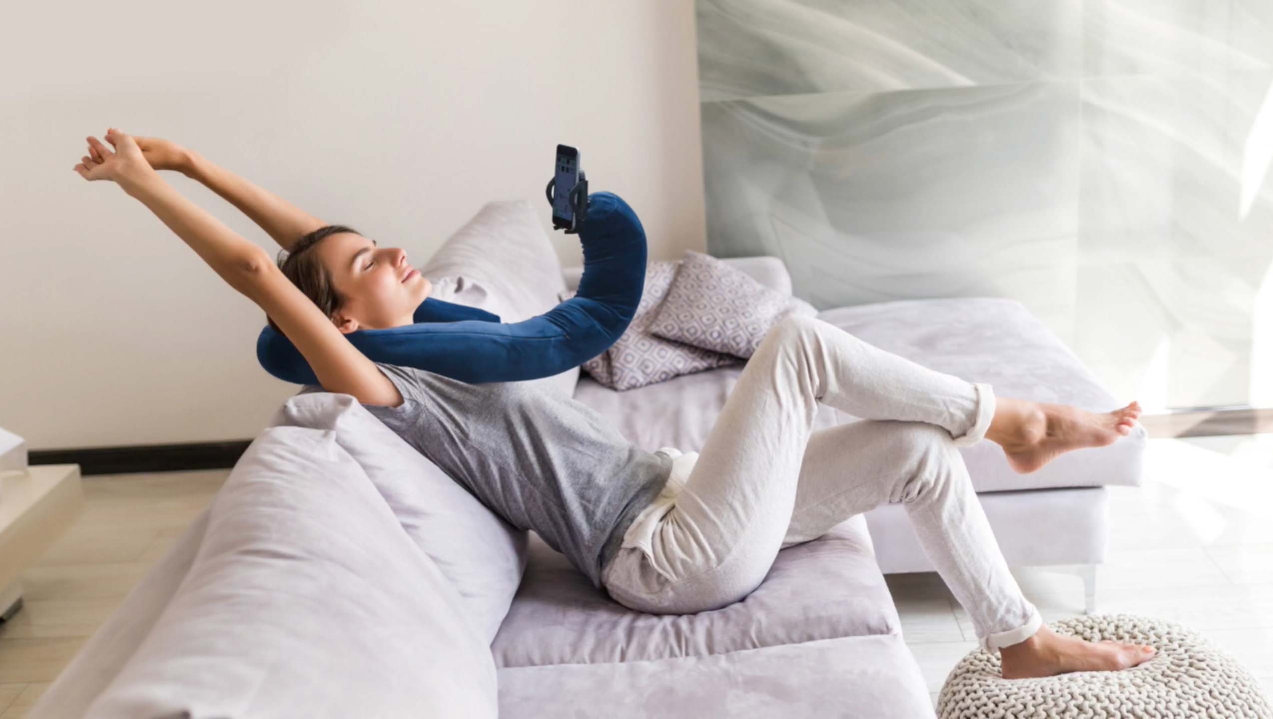 - HANDS-FREE VIEWING - Enjoy and relax as you watch your favorite series, anime, or movie as you mount your phone on our mobile pillow! Available in black, grey, navy, pink, and red. Each piece 4" LW x 57" H.