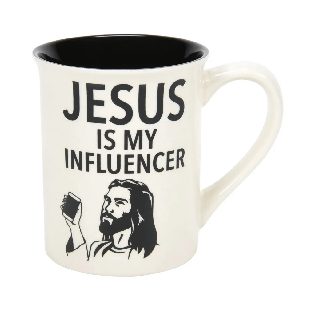 This playful Our Name is Mud mug adds some fun to faith. This black and white mug pokes fun at social media culture and proudly asserts that Jesus is this drinker's influencer. Be sure to like, follow, and share the word of God!