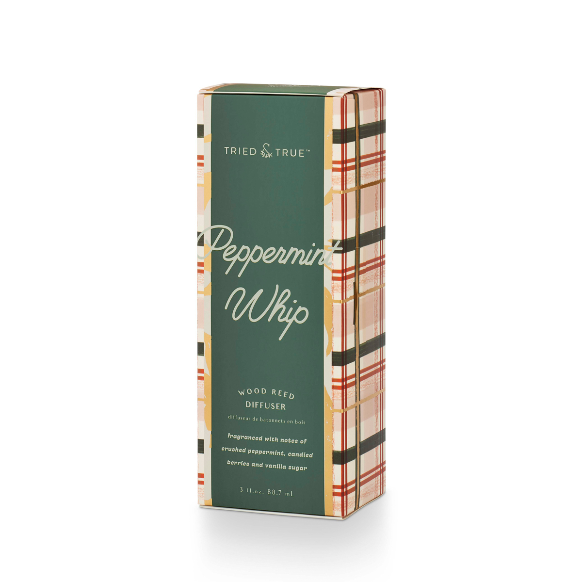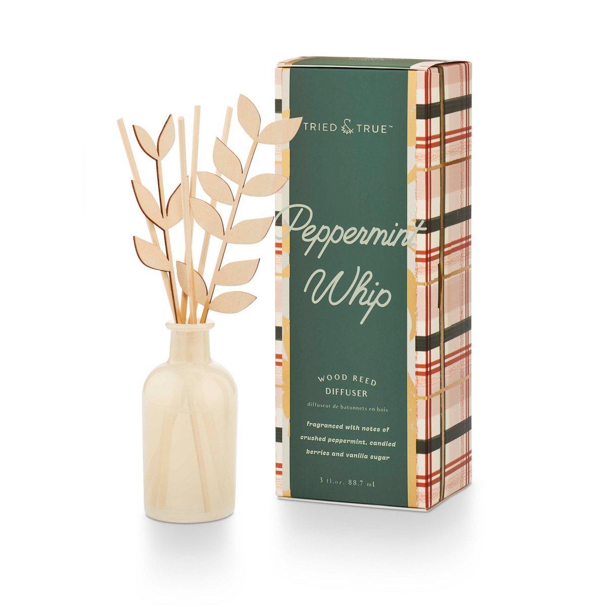 Description Additional Information Peppermint Whip Wood Reed DiffuserDimensions: 2.8 x 2.8 x 2.4 new: true
