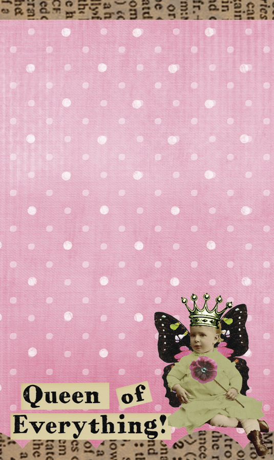 If you feel like you are the queen, or should be, let this cheeky mini notepad inspire you. Featuring a cute crowned infant upon a pink and white polka dot background edged in vintage newsprint. The message etched across the bottom reads "Queen of Everything!"