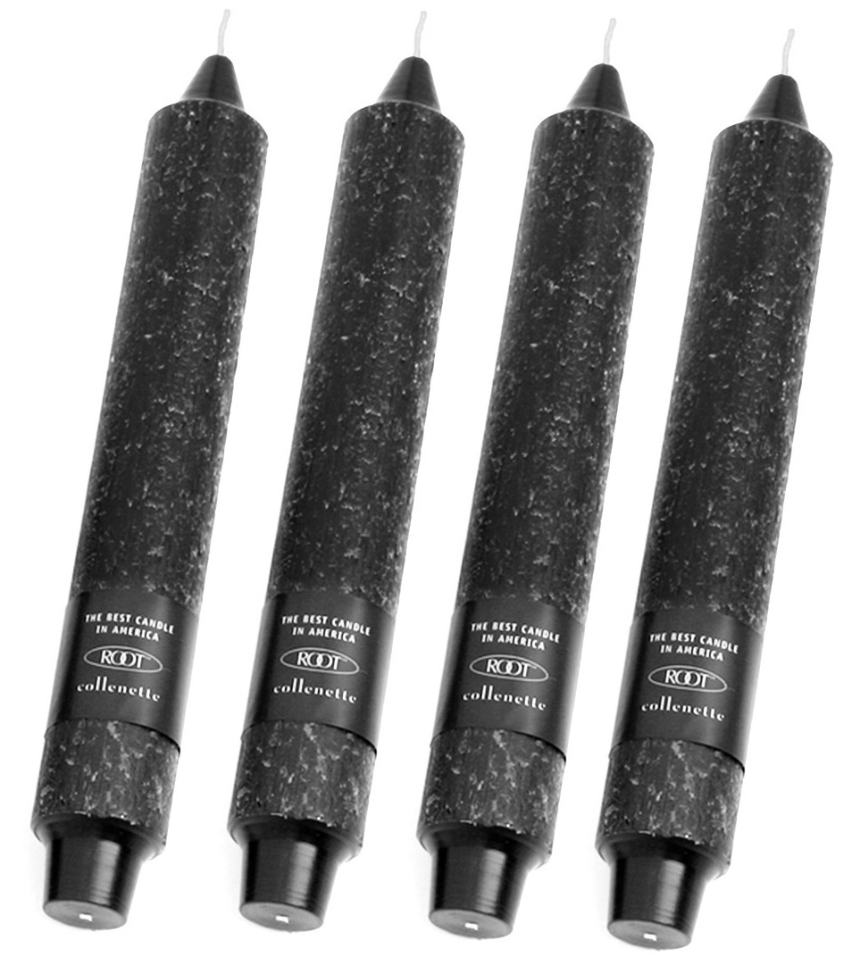 Root Collenette Dinner Candles have a distinctive, profile that lends itself to the most formal presentation. A wider 1 _" diameter virtually assures a flawless performance by eliminating drips. The 7/8" tapered base is compatible with most fine candleholders. These Root Collenette dinner candles are packaged four to a box. A convenience pack and gift item by itself or in a gift basket. The burn time for Timberline Collenette candles is 2-1/2 hours per inch.