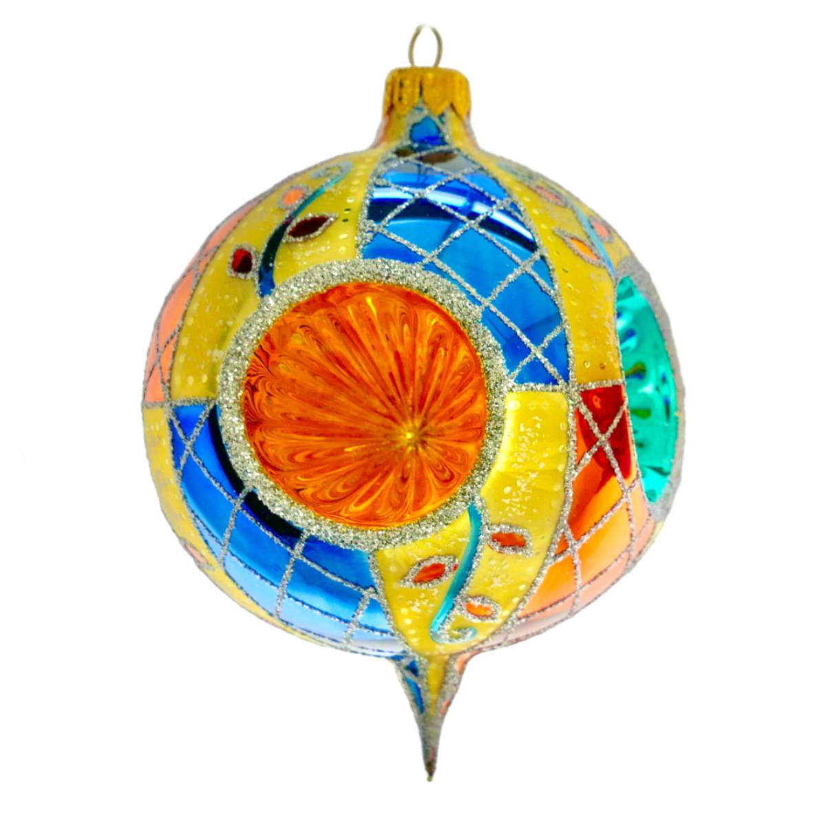 These reimagined onion shaped balls have 4 reflectors on each one, in multi colors, too! A great example of the glassblower's skill and dedication.