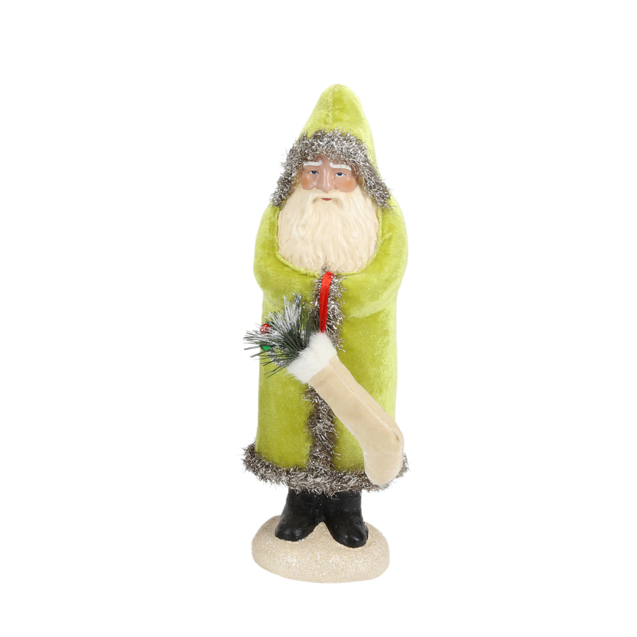 Description Belsnickle Santa, Small - Lime Green Coat by One Hundred 80 DegreesMaterial : Paperpulp Size : 13.25 in.