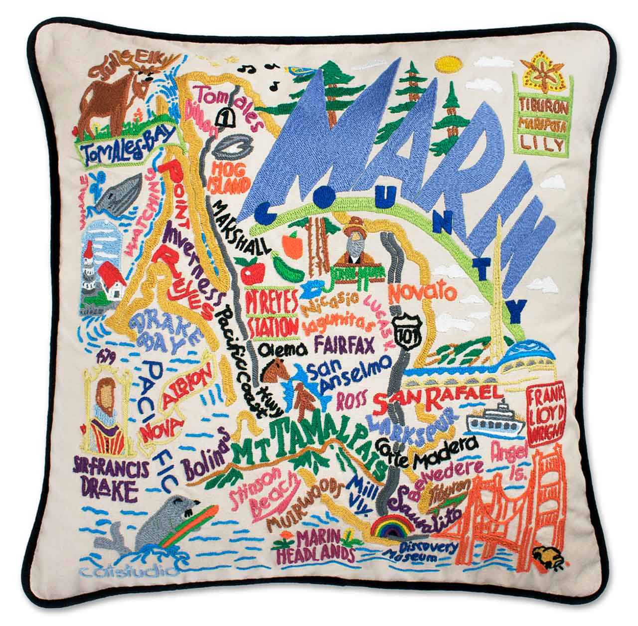 Marin County Hand-Embroidered Pillow by Catstudio