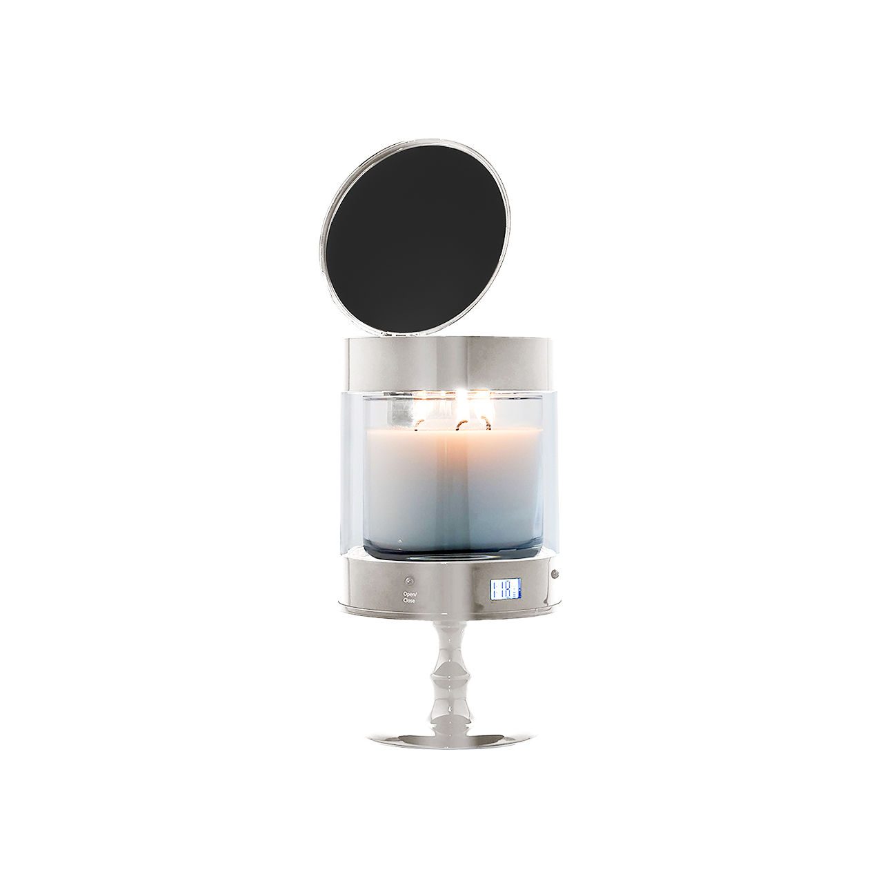 - Use Open/Close button to open the lid of the candle holder. Do NOT force the lid to open or close. Let the lid open and close by itself with the button provided on the candle holder.