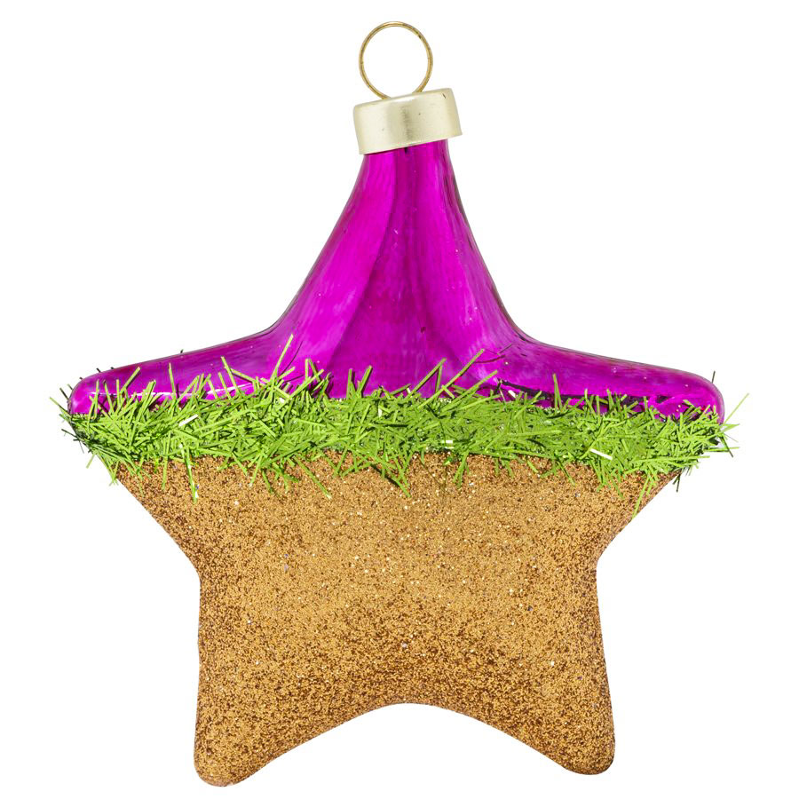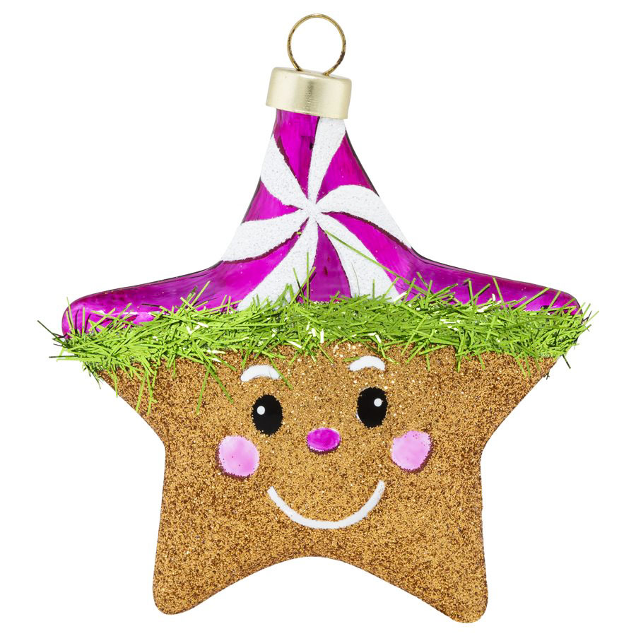 Kat & Annie's twinkling gingerbread star is ready to shine this season with tinsel in bright green and a fun hot pink peppermint twist.